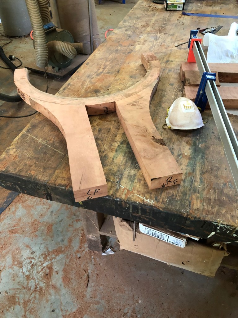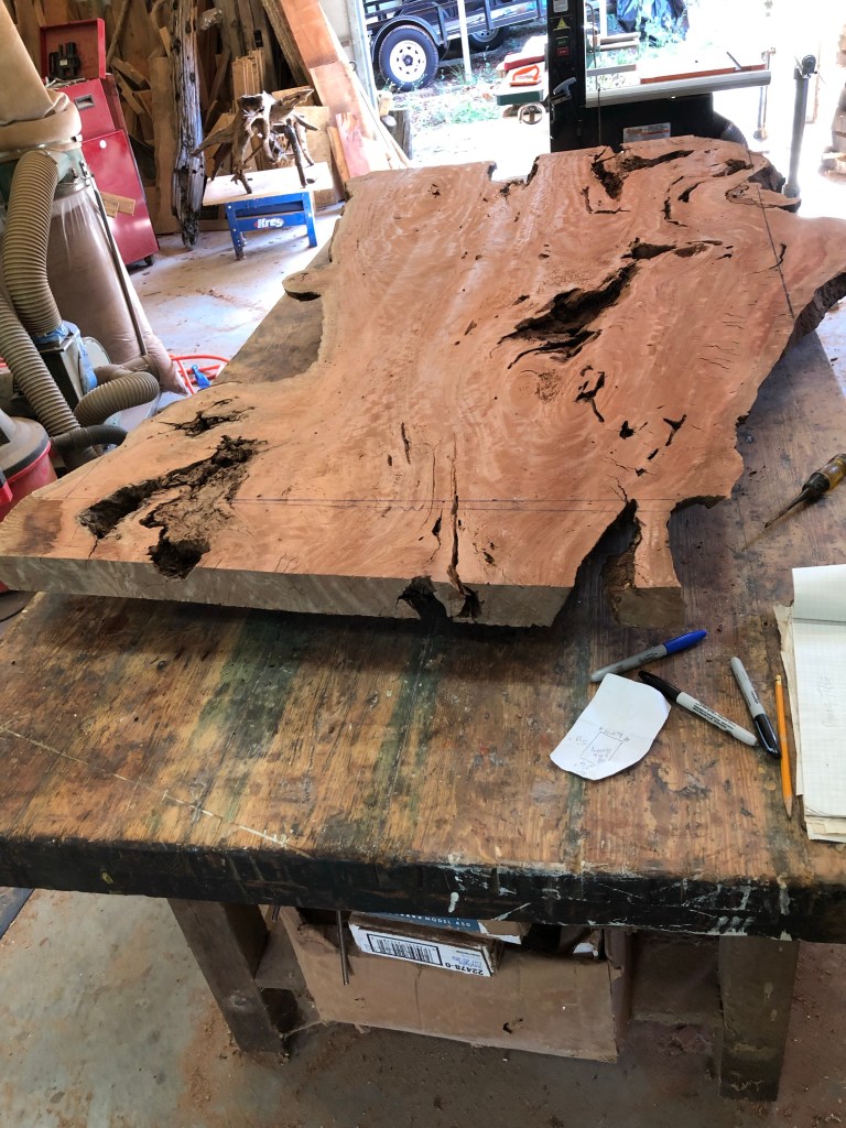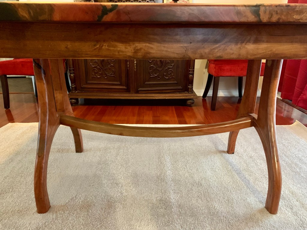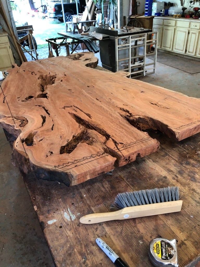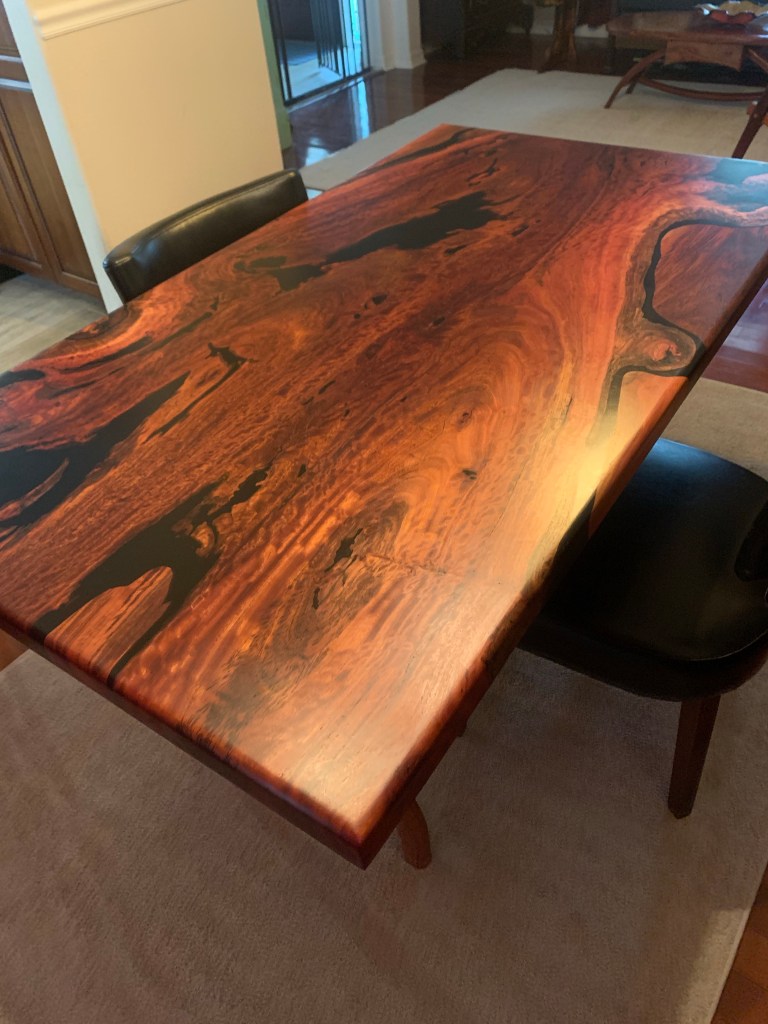 This beautiful piece of swamp mahogany was purchased from Against the Grain. A great source of slabs. I needed a dictated size, which allowed me to build a slightly smaller dining room table for our home. The base of the table had to be built first, in which swamp mahogany was also used that was harvested locally about 5 years ago.