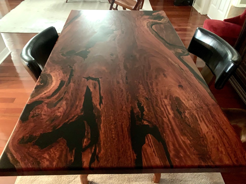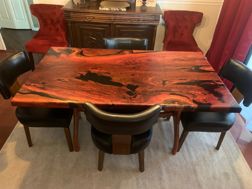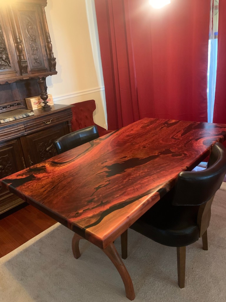 I want to thank my supporters who have helped me immensely in getting my table built. Building a one of a kind table and never having worked with epoxy. Thank you to Against the Grain in Central Florida and You Tube Channel – Blacktail Studios for all their step by step tutorials. Without your knowledge and sharing valuable teachings for woodworkers. I could not have done this table without your help.