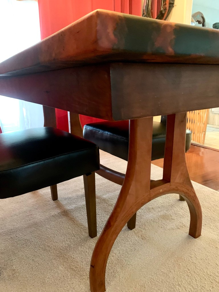 Here she is – our new dining room table from start to finish. It was a labor of love that took a lot of patience and determination.